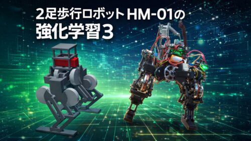 以前実施した自作2足歩行ロボ HM-01の強化学習について改めて考えてみました。 2足歩行ロボット HM-01 の強化学習2 ロボットの強化学習による動作生成は今や当たり前のように実用され、フレームワークも進化し整ってき … 続きを読む 2足歩行ロボット HM-01 の強化学習3